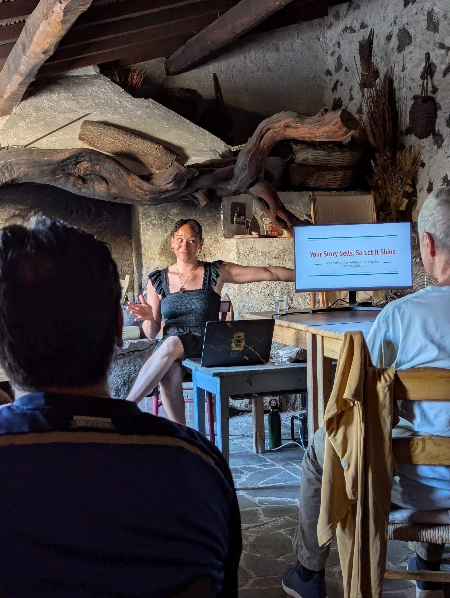 As a Black woman from the American South, bringing my creative lens to this village sparked deeply thoughtful conversations around image-making, representation, and intention. It was an honor to teach a marketing workshop to local growers, makers, and curious historians. I had no idea how needed this offering would be until I saw the courtyard filled with eager minds—even those who couldn’t find a seat stood outside, listening closely as I spoke on authenticity, origin stories, and the power of visual storytelling. Today, I still see the ripple effects in their feeds, in their messages of gratitude, and in the generous offerings they’ve given me—fruit from their land, treasures from their artisan shops.